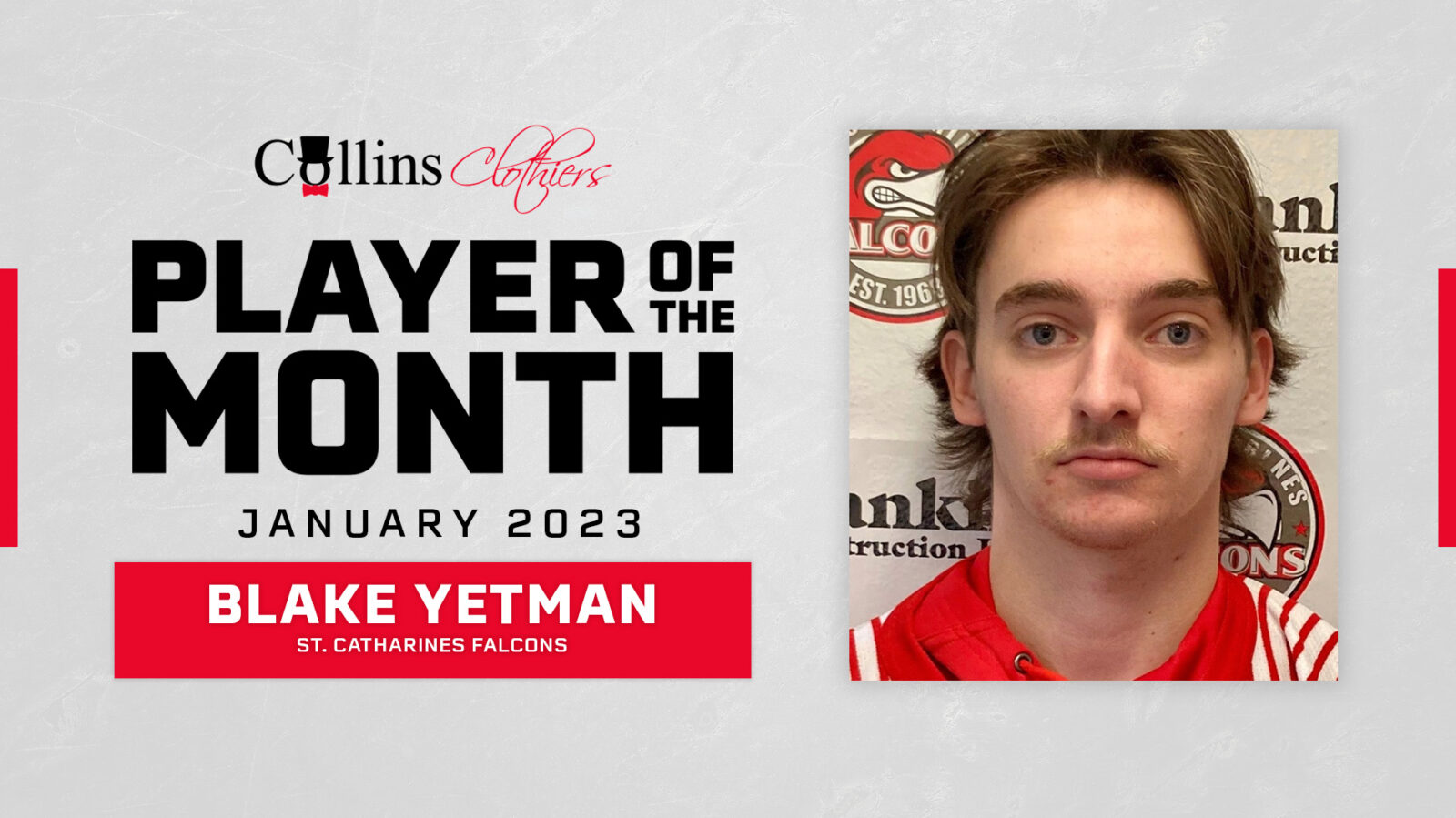 The January Player of the Month is Blake Yetman from the St. Catherines Falcons. The 20-year-old Whitby native and Sutherland Cup Champion is the hottest player in the GOJHL, riding a 14-game multi-point streak with 15 goals and 24 assists and he sits third in league scoring with 67 points in 34 games. He averaged just under 3 points per game in January and scored a ‘Michigan’ goal against Welland on January 22. Yetman was selected in the third round, 47th overall, by the Erie Otters in the 2020 U18 draft.