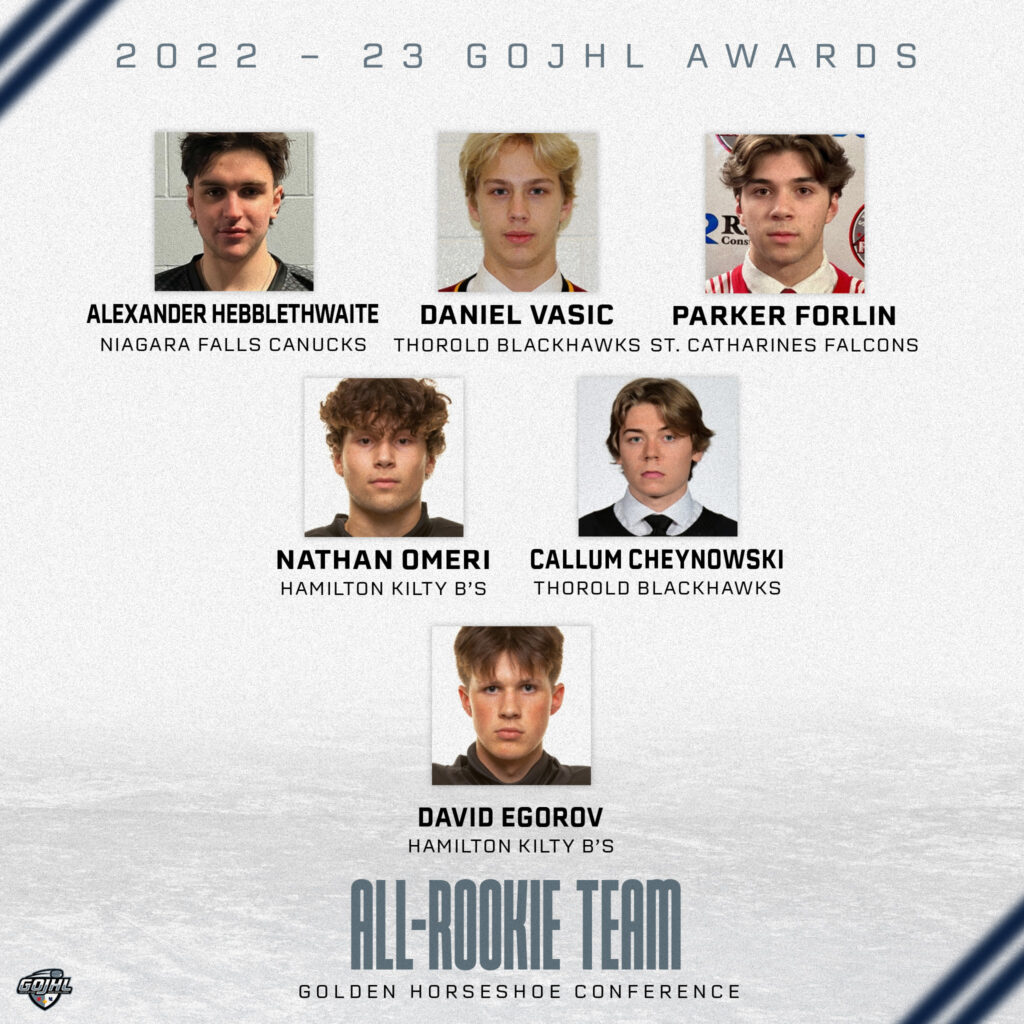 March 30, 2023 – The Greater Ontario Junior Hockey League is pleased to announce the Golden Horseshoe Conference Award Winners along with the All-Star and Rookie Teams: