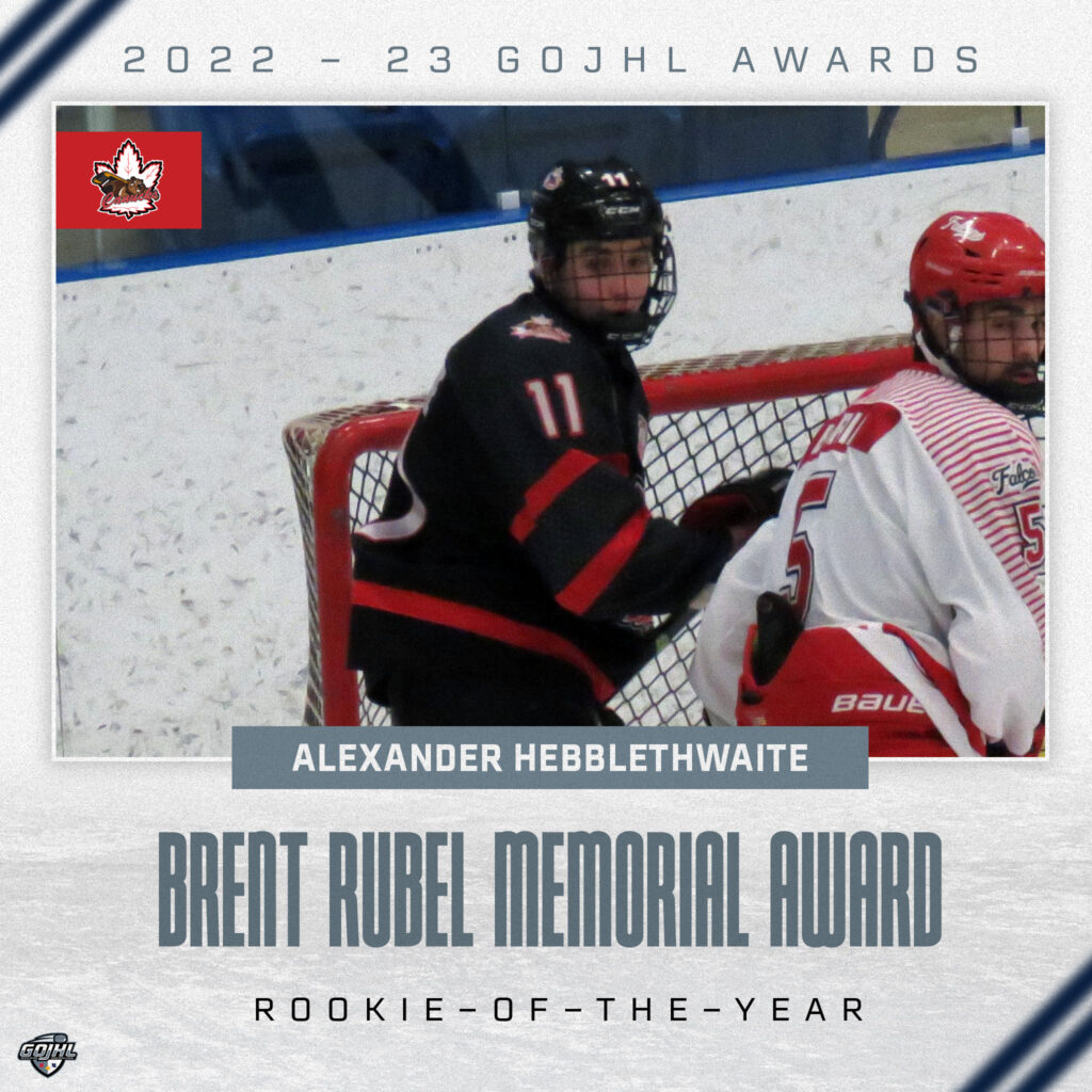 In his first full season, the 17-year-old Mississauga native scored a whopping 34 goals and added 24 assists. 9 of those goals came on the powerplay and 5 were game-winners and he spend just 8 minutes in the penalty box all season. Hebblethwaite was also selected to participate in GOJHL Top Prospects Game and was the league’s Collins Clothiers Rookie of the Month for December. He was taken in the twelfth round by the Oshawa Generals in the 2021 OHL Priority Draft.