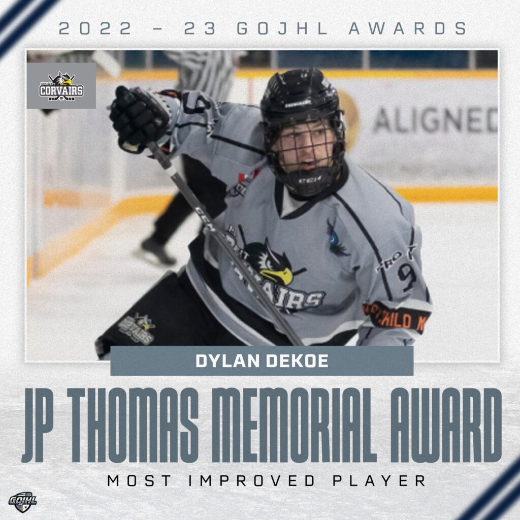 Dekoe, a 20-year-old Welland native, had a 20-goal season to go along with 34 assists tying teammate Calvin Crombie for the team lead in points. He was also selected as the Collins Clothiers GOJHL Player of the Month for October.