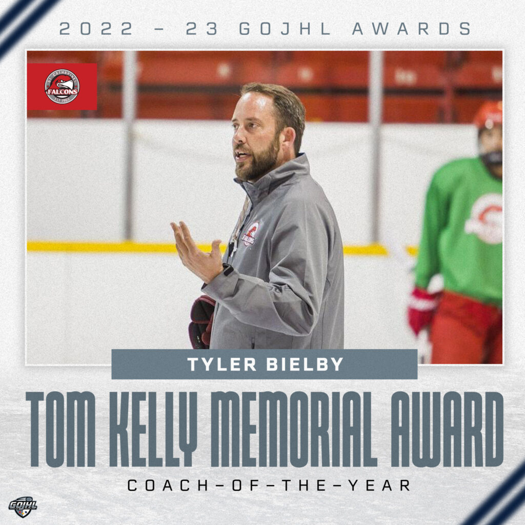 Bielby and his staff led the Falcons to a league-best record of 36 wins, 6 losses, and 6 overtime losses, good for 82 points. They finished a single point ahead of Hamilton in the Golden Horseshoe Conference.
