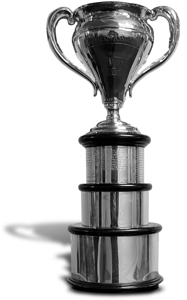 First awarded in 1934, the Sutherland Cup is emblematic of Junior ‘B’ supremacy in the Ontario Hockey Association. The 23 teams in the Greater Ontario Junior Hockey League now compete for this trophy. The Waterloo Siskins have won the most Sutherland Cup championships with 12, with their first coming in 1940 and their most recent in 2019. In 2016, the Caledonia Corvairs became the first team to win the Sutherland Cup in three consecutive years. |